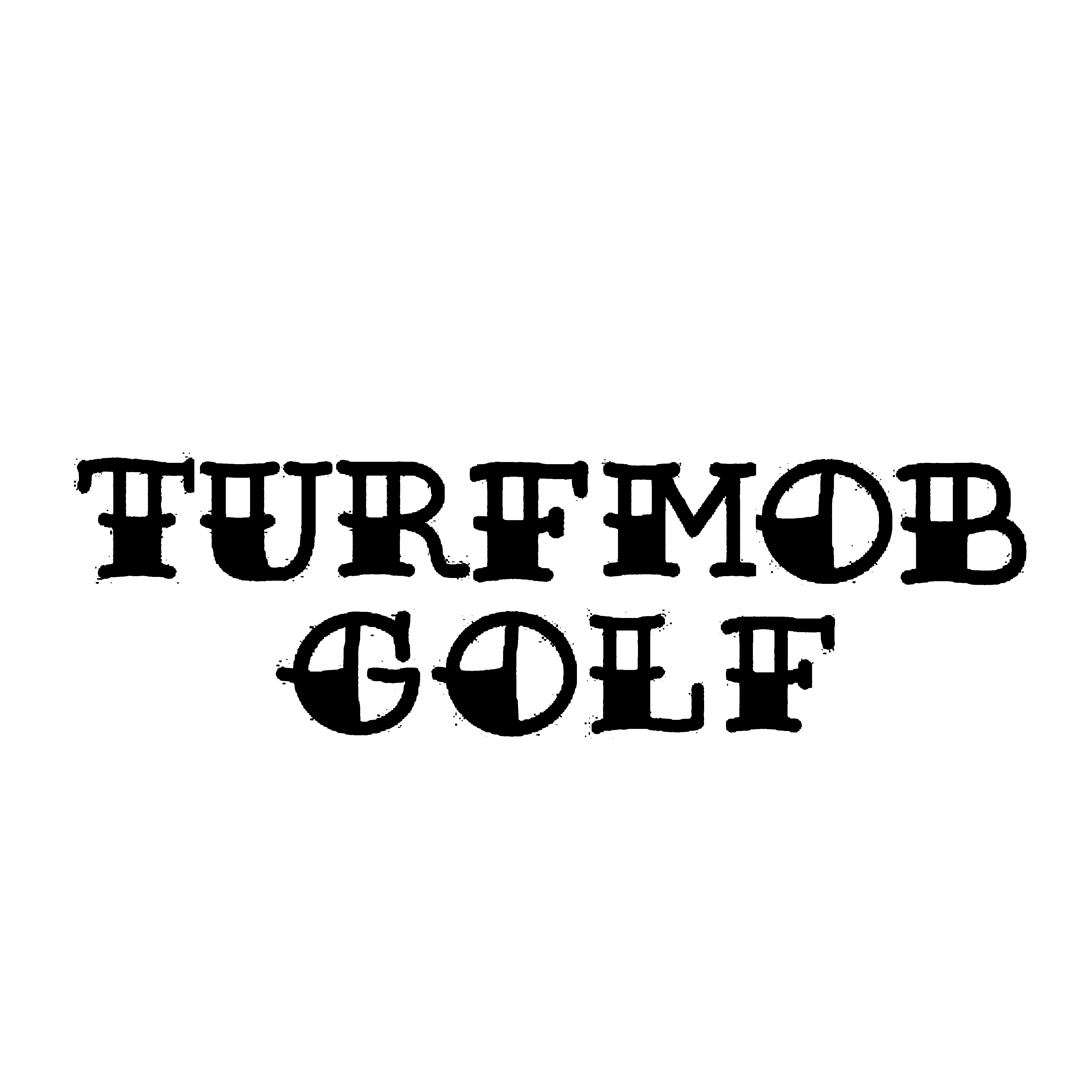 センターに配置されたダガーを貫くゴルフボールとリボンにはTURF / MOB / GOLFERS のメッセージ。
